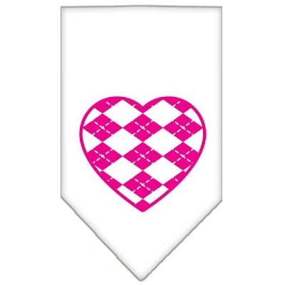Mirage Pet Products Argyle Heart Pink Screen Print Bandana for Pets, Large, White