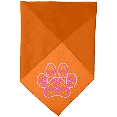 Mirage Pet Products Argyle Paw Pink Screen Print Bandana for Pets, Large, Orange