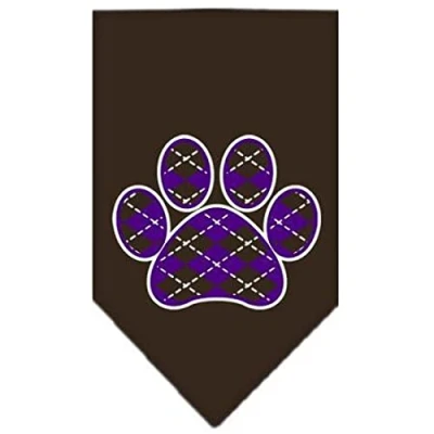 Mirage Pet Products Argyle Paw Purple Screen Print Bandana for Pets, Small, Cocoa