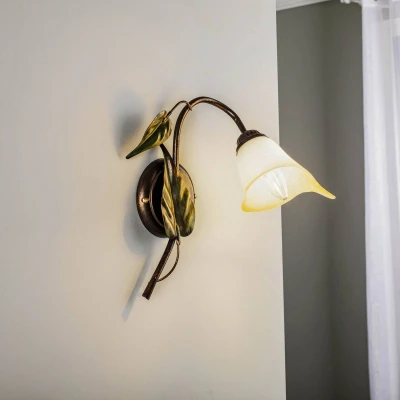 Miranda single-bulb wall light: Florentine style meets European craftsmanship The Miranda 1-bulb wall light combines Florentine style with high-quality European craftsmanship. Made from sturdy iron and elegant glass, it adds a stylish touch to any room, whether it's your living room, hallway, dining room or bedroom. The harmonious colour scheme in bronze, gold, green and opal emphasises the artistic design and gives the light a timeless elegance. A special feature of the Miranda wall light is its dimmability, which is made possible by an external dimmer. This allows the light intensity to be flexibly adjusted to create the desired atmosphere. The light is an outstanding example of European craftsmanship and brings a fascinating lighting effect to any room.