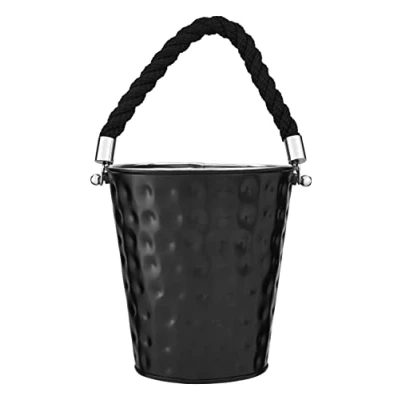 Miressa Party Bucket, Hammered Effect/Rope Handle, Black Stainless Steel, Large