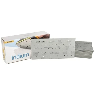 Mirka Iridium Premium Sandpaper 115x230mm / Grip 55 hole/Grit 220/50 pcs/For sanding paint, putty, primer, wood, steel, mineral based materials, plastic