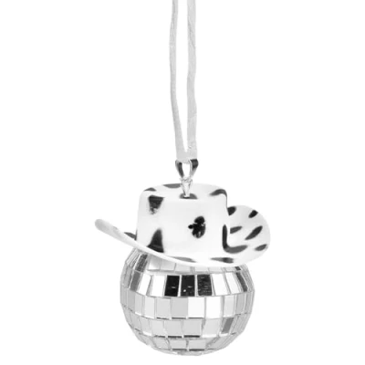 Premium Materials: Crafted from glass mirror balls and ABS hats, this ornament is sturdy, reliable, and built to last. It resists damage, deformation, and rust, ensuring long-term use and enjoyment. Unique Decoration: A mirror disco ball topped with a cowboy hat shines brilliantly when illuminated. Elevate your driving experience with joyful vibes and a visually captivating ornament that adds a touch of fun to your journey. Convenient Hanging: Equipped with a string, this disco glass ball is easy to hang anywhere you please. Move it effortlessly between different spots to match your evolving decorative ideas. Versatile Application: This distinctive glass ball ornament is perfect for decorating your car, home, or office. It also makes a lively addition to parties, infusing spaces with energy and style. Entertaining Gift: The sparkling car rearview mirror hanging is an ideal gift for family, friends, children, and colleagues. Its unique charm and cheerful aura make it a delightful present for any occasion.