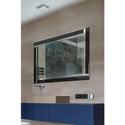 MirrorOutlet 3Ft11 X 2Ft7 120cm 80cm Black/Silver Bevelled Frameless Wall Mirror Modern, Wood,SWS008