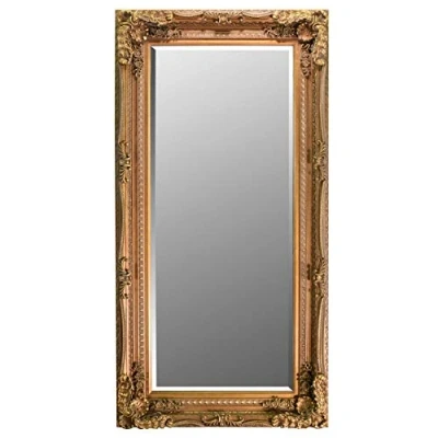Carved ornate framed gold wall mirror would be a beautiful and stylish addition to any room in the house This mirror has a bevelled glass size of 4ft 10 x 2ft, 147cm x 61cm and has an overall size of 5ft 9 x 2ft 11, 175cm x 89cm Classical Antique Style Full Length floor standing Leaner Wall Mirror Which Can Be Hung Either Portrait or Landscape. Do Not Use String to Hang This Mirror, Please Use Heavy Duty Fixings. Create a Classical Statement for your Lounge, Dining room, Bedroom or Kitchen Explore MirrorOutlet Full Range of Venetian, Antique & Classical Wall and Floor standing mirrors