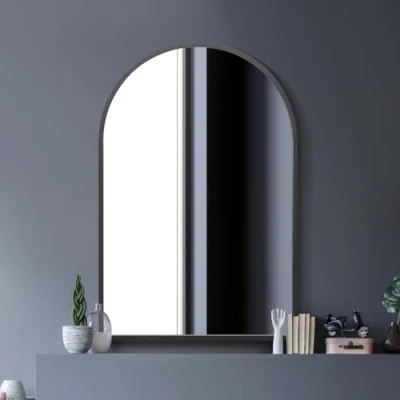MirrorOutlet Arched Modern Black Large Metal Wall Mirror: 120 x 80cm Suitable for Bedroom, Living Room, Dressing and spaces.