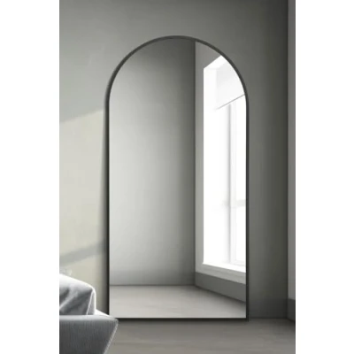 MirrorOutlet Arched Modern Black Large Metal Wall Mirror: (200CM X 100CM). Suitable for Bedroom, Living Room, Dressing and spaces.