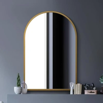 MirrorOutlet Arched Modern Gold Large Metal Wall Mirror: 120 x 80cm Suitable for Bedroom, Living Room, Dressing and spaces.