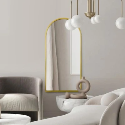 MirrorOutlet Arched Modern Gold Large Metal Wall Mirror: 63 X 31 (160CM 80CM). Suitable for Bedroom, Living Room, Dressing and spaces.