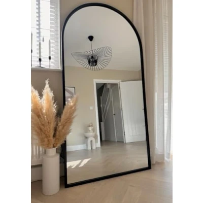 MirrorOutlet Full Length Black Large Tall Arched Metal Modern Wall Mirror: 180 x 90cm Suitable for Bedroom, Living Room, Dressing and spaces.