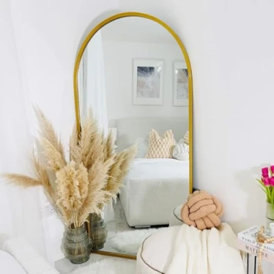 MirrorOutlet Full Length Gold Large Tall Arched Metal Modern Wall Mirror: 180 x 90cm Suitable for Bedroom, Living Room, Dressing and spaces.