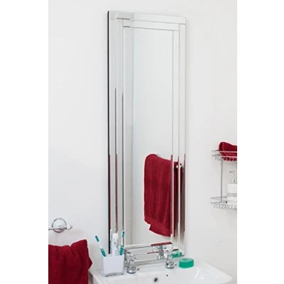 Large double edged Venetian wall mounted mirror with premium glass to the edges which boasts high quality mitred corners on the outside with a mirrored inner 'frame' giving a real modern look for your home. This mirror has an overall size of 3ft11 x 1ft4 120cm x 40cm Classical Antique Style Venetian Wall Mirror Which Can Be Hung Either Portrait or Landscape. Do Not Use String to Hang This Mirror, Please Use Heavy Duty Fixings. Create a Modern Statement for your Lounge, Dining room, Bedroom or Kitchen Explore MirrorOutlet Full Range of Venetian and Classical Full Length Leaner and Wall mounted mirrors