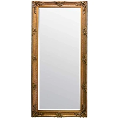 AmazonThis extravagant 3.5inch framed gold full length floor standing wall mirror adds style to any room. With ornate detailing in all four corners and sides this is a gorgeous piece ideal for any room from bedroom to lounge This mirror has a glass size of 4ft 10 x 2ft, 147cm x 61cm and has an overall size of 5ft 9 x 2ft 11, 175cm x 89cm Classical Antique Style Wall Mirror Which Can Be Hung Portrait or Landscape on Your Wall. Do Not Use String to Hang This Mirror, Please Use Heavy Duty Fixings. Create a Classical Statement for Your Lounge, Dining room, Bedroom, or Kitchen Which Enhances Your Home Décor Explore MirrorOutlet Full Range of Venetian, Antique & Classical Wall and Floor standing mirrors