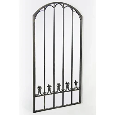 MirrorOutlet Large Metal Rustic Arched Shaped Window Garden Outdoor Mirror 140cm X 75cm, Black (GMA030)