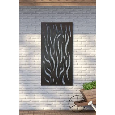 Beautiful Screen for the garden or inside. Fixings attached for simple hanging. Metal rustic Add that Special touch to your garden wall or fence or indeed inside your lounge, living areas, dining room, bathroom, office, or bedroom. Fantastic Flame effect Rectangular garden Screen. This Screen has a Flame effect design. Decorative Screens for the garden are becoming incredibly popular. Simply add a screw to your chosen surface and Hang. Dimensions are 120cm X 60cm