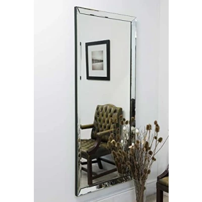 Milton Manor Venetian Extravagant 3.5" frameless all glass full length floor standing leaner wall mounted mirror adds style to any room from the living room to a hallway. This mirror has a glass size of 4ft10 x 2ft, 148cm x 61cm and has an overall size of 5ft 5 x 2ft 7, 168cm x 78cm. Beautiful Mirror for the Home: Decorate and add beauty to your home with this quality piece. Mirrors make spaces appear larger, brighter, and more light-filled. Versatile Shape: Classical rectangle design with bevelled edges for a modern vibe. This mirror can be hung either portrait or landscape depending on the constraints of your room. Explore MirrorOutlet Full Range of Venetian, Antique & Classical Wall and Floor standing mirrors