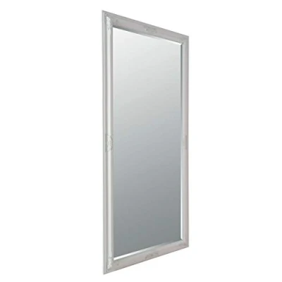 Milton Manor Antique design large White full length leaner floor standing Wall Mirror.The frame design boasts ornate detailing in all four corners and twin sided pattern. This mirror has a bevelled glass size of 58inch x 23inch, 147cm x 58cm and has an overall size of 5ft 3 x 2ft 5, 160cm x 73cm Large Full length leaner floor standing wall mirror at 160 x 73cm Classical Antique Style Wall Mirror Which Can Be Hung Either Portrait or Landscape. Do Not Use String to Hang This Mirror, Please Use Heavy Duty Fixings. Explore MirrorOutlet Full Range of Venetian, Antique & Classical Wall and Floor standing mirrors