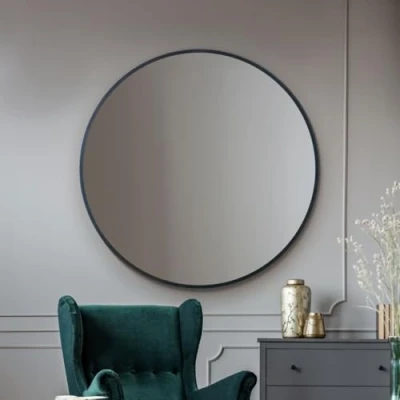 Timeless Round Design: Add a touch of elegance with this modern circular wall mirror, framed in sleek black metal for a bold yet minimalist statement. Perfect for enhancing any space with a contemporary, clean aesthetic. Versatile Size Options: The Mirror is 120cm in diameter however is also available 80cm, 90cm, 100cm, and 110cm, ensuring the perfect fit for your hallway, living room, bedroom, or bathroom. Choose the ideal size to complement your decor. Premium Quality Reflection: Crafted with high-quality glass, this mirror offers a distortion-free, clear reflection. Ideal for brightening up your space and adding depth to any room with its sleek and polished finish. Strong & Durable Metal Frame: Designed with a sturdy black metal frame, this mirror provides durability and stability while adding a sophisticated industrial touch. Built to last and resist moisture, making it perfect for any home setting Effortless Installation: Comes with secure hanging hardware for easy wall mounting. Whether used as a statement piece or as part of a gallery wall, this mirror enhances any room while offering practical functionality.