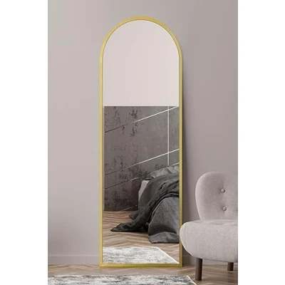 MirrorOutlet The Arcus Gold Framed Modern Full Length Arched Leaner/Wall Mirror 71" X 24" (180CM 60CM) Silver Glass with Black All weather Backing