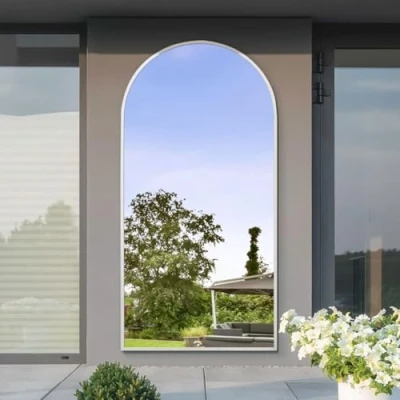 MirrorOutlet The Arcus White Framed Modern Full Length Arched Leaner Wall Garden Mirror 79" X 39" (200CM 100CM) Silver Glass with Black All weather Backing.