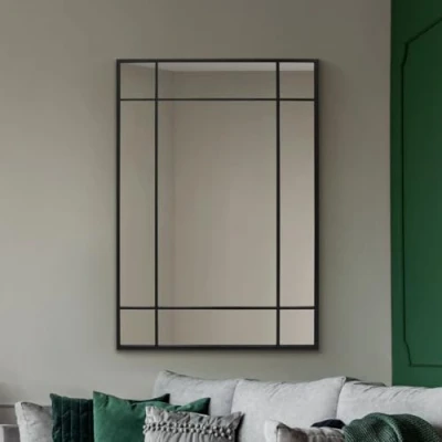 MirrorOutlet The Fenestra Black Modern Contemporary Wall Mirror 39" X 27" (100CM 70CM) Silver Glass with Metal Frame.…