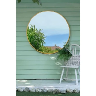 MirrorOutlet The Fenestra Gold edged Modern Round Circular Garden Wall Mirror 43" X (110CM 110CM) Silver Glass with Black Metal Frame
