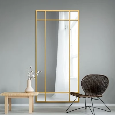MirrorOutlet The Fenestra Gold Modern Contemporary Leaner and Wall Mirror 71" X 33" (180CM 85CM) Silver Glass with Black Metal Frame. Landscape or Portrait.…