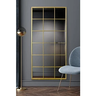 MirrorOutlet The Fenestra Gold Modern Window Full Length Leaner/Wall Mirror 69" X 33" (174CM 85CM) Metal Frame