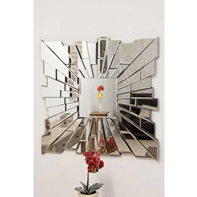 This radiant starburst design mirror is perfect if your looking for that fresh modern look it is made up from small sections of individually handmade pieces of premium mirror glass that make the 'frame' for a smaller mirror in the centre The overall measurements of this fantastic mirror are 3ft x 3ft 90cm x 90cm we are proud to offer this as a part of our new range and please look further into our venetian section for more amazing designs! Classical Antique Style Venetian Wall Mirror Which Can Be Hung Either Portrait or Landscape. Do Not Use String to Hang This Mirror, Please Use Heavy Duty Fixings. Create a ModernStatement for your Lounge, Dining room, Bedroom or Kitchen Explore MirrorOutlet Full Range of Venetian and Classical Full Length Leaner and Wall mounted mirrors