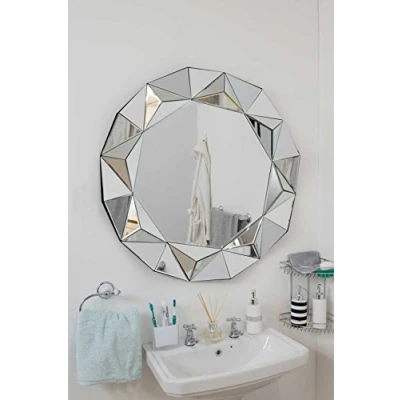 MirrorOutlet Welwyn Modern Silver Round Venetian Wall Mounted Mirror with Octagonal Central Section 3Ft, (90cm)