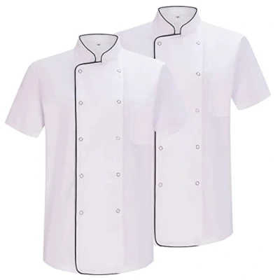 Men's Short Sleeve Kitchen Uniform,Two Row with Five Straightened Buttons on Each Side Chef jackets pocket detail on the left side of the uniform Chef jackets ideal for chef,cookers,kitchen helpers,hospitality,restaurant,bakeria.ect Guaranteed materials:65% polyester, 35% cotton, weight:190 g/m130 Chef jackets with button reformed marminton sollastre guisandero marinade salsero - ref.6821b