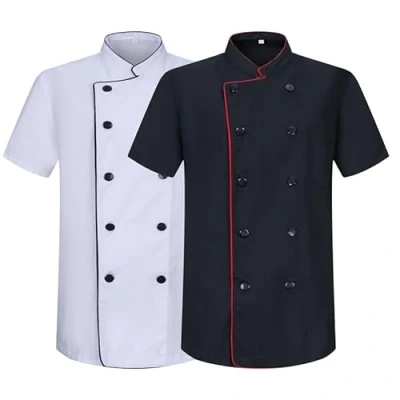 Men's Short Sleeve Kitchen Uniform,Two Row with Five Straightened Buttons on Each Side Chef jackets pocket detail on the left side of the uniform Chef jackets ideal for chef,cookers,kitchen helpers,hospitality,restaurant,bakeria.ect Guaranteed materials:65% polyester, 35% cotton, weight:190 g/m130 Chef jackets with button reformed marminton sollastre guisandero marinade salsero - ref.8421b