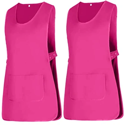 Changing Room Cleaning Apron Large front pocket for convenient storage, 65% polyester, 35% cotton Ladies Colourful Crew Neck T-Shirt Apron with Piping Edges Ideal for uniforms in cosmetic clinics, veterinarians, hospitals, hair salons, etc. for daily use. Colorful shirt shape apron for women, pocket details on the front at belly level, the sides are adjustable by clips.
