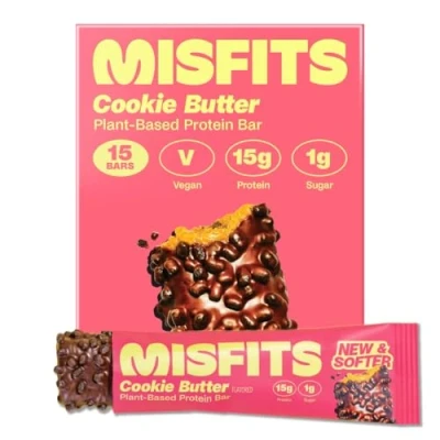 Misfits Vegan Protein Bar, Cookie Butter (Speculoos), Plant Based Chocolate Bars, High Snacks with 15g Per Low Carb, 1g Sugar, Fibre, Healthy Snack, 15 x 50g Pack