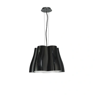 This range is inspired by the organic movement of fabric and manufactured from a polyurethane injection giving it a contrasting rigid finish. The pendant is then coated in a white or black lacquer, combined with a hint of vintage flare makes it an attraction in any interior. The collection utilises polished chrome plated framework to off-set the monochrome colour finishes. The central electrical cable of the pendant is coated in a fabric cover to colour match the lacquer finish. With three lamp holders, an extra level of illumination is possible if required.