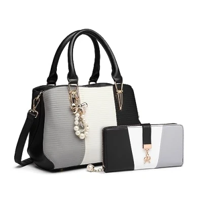 Material: The women’s handbag and purse set is made of PU leather with durable polyester lining and light gold hardware. Size: Handbag-24*10*21 cm (L*W*H), the height of top handle is 15 cm, it weights 0.9 kgs; WALLET-19.5*10*3 cm (L*W*H), it weights 0.19 kgs. Structure: This handbags for women contains 2 compartments, 2 inner zip pockets, 1 rear zip pocket, 2 open pockets; women’s purse contains 12 card slots, 1 ID window, 2 compartments and 1 zipper pocket. Fetures: Elegant and classical desiner handbags for women, 3 colour block sections design with gold coloured bow, pearl and crystal style drop. Occasions: Suitable for working, shopping, traveling wedding or daily use. Perfect to use as birthday gifts for women, girls, mom, ladies, friends or colleague.