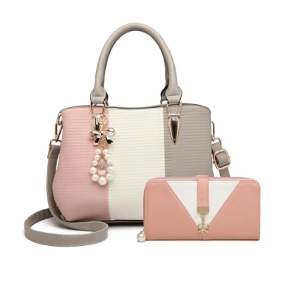 Material: The women’s handbag and purse set is made of PU leather with durable polyester lining and light gold hardware. Size: Handbag-24*10*21 cm (L*W*H), the height of top handle is 15 cm, it weights 0.9 kgs; WALLET-19.5*10*3 cm (L*W*H), it weights 0.21 kgs. Structure: This handbags for women contains 2 compartments, 2 inner zip pockets, 1 rear zip pocket, 2 open pockets; women’s purse contains 12 card slots, 1 ID window, 2 compartments and 1 zipper pocket. Fetures: Elegant and classical desiner handbags for women, 3 colour block sections design with gold coloured bow, pearl and crystal style drop. Occasions: Suitable for working, shopping, traveling wedding or daily use. Perfect to use as birthday gifts for women, girls, mom, ladies, friends or colleague.