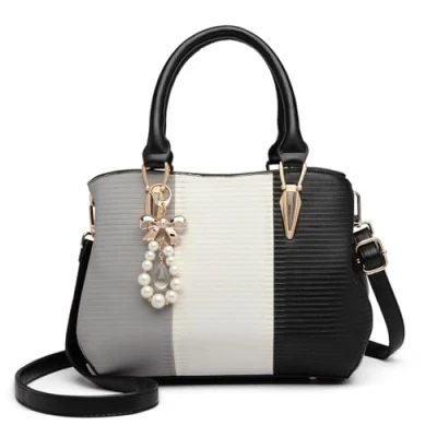 Material: The Miss Lulu handbag is crafted from premium PU leather with a durable polyester lining and accented with light gold hardware. Size: Dimensions are 24*10*21 CM (L*W*H) with a top handle height of 15 CM and a weight of 0.61 KG. Includes a detachable shoulder strap for crossbody wear. Structure: The bag features 2 main compartments, 2 inner zip pockets, 1 rear zip pocket, and 2 open pockets. It comfortably fits a 9.7” iPad, phone, wallet, cosmetics, sunglasses, and other small essentials. Features: A chic, timeless design with a 3-tone colour block and elegant gold bow, pearl, and crystal-like embellishments. Occasions: Ideal for work, shopping, travel, weddings, or daily use. Also perfect as a birthday gift for women, girls, mums, friends, or colleagues.