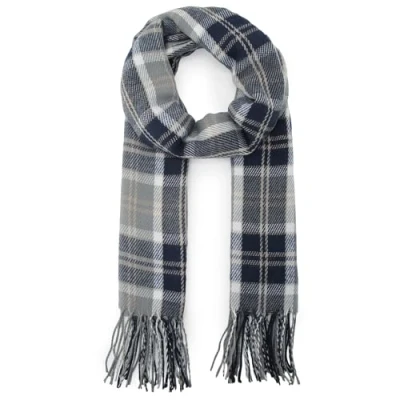 Miss Lulu Scarf for Men Plaid Check Winter Warm Soft Wool Scarves with Tassel Large Tartan Wrap (Dark Blue)