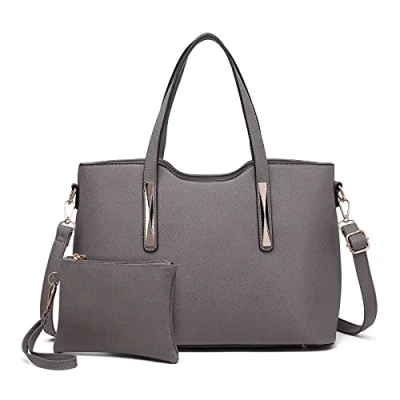 MISS LULU Tote Bag for Women PU Leather Handbags Set Ladies Top Handle Shoulder Large Capacity (Grey)