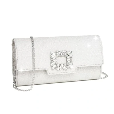 Miss Lulu Women's Elegant Chain Clutch Bag Sparkling Rhinestone Evening Handbag for Weddings, Parties & Banquets (Sliver)