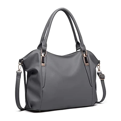 Miss Lulu Women's Large Tote Bag, Elegant Handbag, Shoulder Bag for Commute, Travel, and Shopping (Deep Grey)