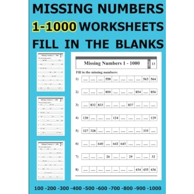 Missing Numbers 1 1000 Worksheets Fill in the Blanks: Counting from One to Thousand , Ages 6 10, Grades 4