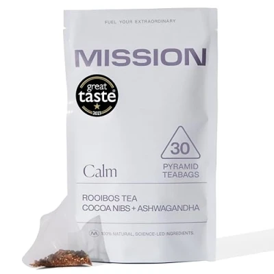 MISSION Calm Tea Rooibos with Cocoa & Ashwaganda Reduce Stress 30 Pyramid Bags
