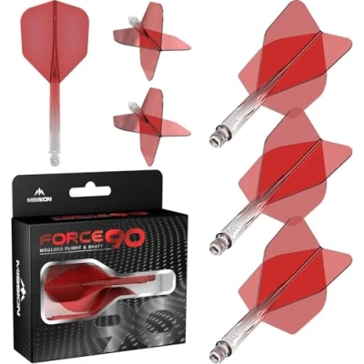 Mission Darts Force 90 – Integrated Moulded Flight and Shaft System. Feel the force of the Mission Force 90 – a fully integrated flight and shaft system! Made from high quality and durable materials, the Force 90 will keep a perfect 90-degree angle between the flight’s fins during play, providing players with a consistent flight trajectory every time. The Force 90 is at the high end of durability and strength with these flights made from high grade composite material, giving every player the peace of mind of having a consistent performance with every throw. The flights on the Force 90 feature smooth edges to help reduce deflections during play and makes them slice through the air to promote a truer and more precise trajectory. Available in three different shapes (No. 2, No. 6 and slim) and each in three lengths (short, tweenie and medium) to cater for the preferences of all players. Also available in multiple colours.