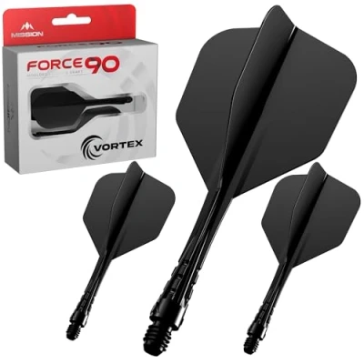 Mission Darts Force 90 Vortex Integrated Precision Moulded Dart Flight And Shaft System Multiple Styles Colours. (Standard No6 Tweenie, Solid Black)