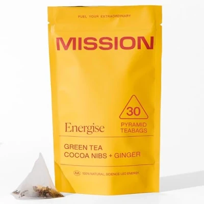 MISSION Energise Tea Green with Cocoa & Ginger Improve Cognitive Function 30 Pyramid Bags
