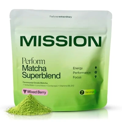 MISSION Perform Matcha Superblend Natural Berry Flavour Ceremonial Grade Matcha, Yerba Mate, Lion’s Mane & Cordyceps (28g)