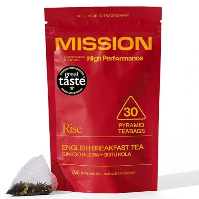 MISSION Rise Tea English Breakfast with Yerba Mate, Gotu Kola & Ginkgo Biloba Improve Performance 30 Pyramid Bags