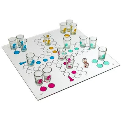The Little Glass Horses Drinking Game from MISTER Gadget is a revised version of the classic board game where each toy figure is replaced with a coloured shot glass. Players advance their playing pieces according to the dice results, giving the game a festive dimension. This game is designed to create evenings with friends, combining strategy and socializing. Each player chooses a colour of white, red, blue, green or yellow, and must always drink the contents of their glass when caught by an opponent. The playing field is decorated in an attractive way with coloured fields corresponding to the shot glasses. The rules are simple and accessible, so all players can have fun without having to dig into complex instructions. The Small Horse Racing Glass Drinking Game is ideal for parties and gatherings by offering a fun alternative to traditional board games. It encourages social interaction and laughter while adding an exciting touch through the shot glasses. This game is also an excellent gift for lovers of festive evenings. It comes in attractive packaging, ready to be given as a gift. The glass shot glasses add a touché elegance and make this game a chic addition to any board game collection., Manufacturer: CMP